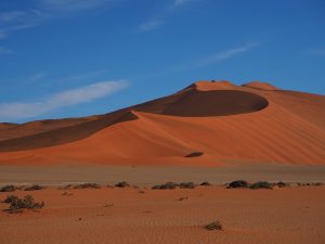 Namibië heeft een prachtig landschap. Doordat het een enorm land is, is het landschap erg gevarieerd. In het zuiden van Namibië ligt bijvoorbeeld Fish River Canyon. Hier kun je een wandeling maken terwijl je prachtig uitzicht over de canyon hebt. Daarnaast is de Namibwoestijn zeker een hoogtepunt in het Namibische landschap. Het bekendste deel van de woestijn zijn de duinen van de Sossusvlei. Dit zijn rood-oranje duinen die soms wel 300 meter hoog zijn.